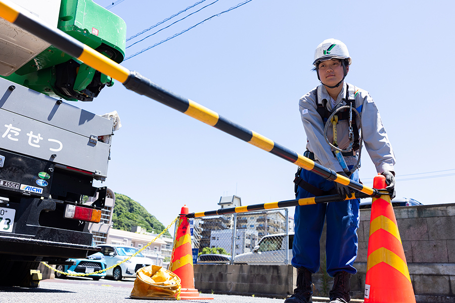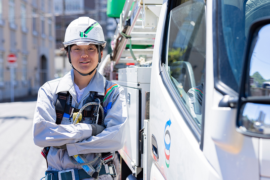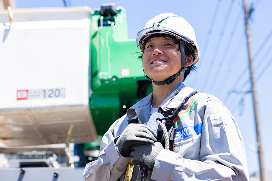 現在は、現場の最前線で働く先輩方に追いつけるよう、これまで以上に施工の知識や技術を身に付けていきたいと考えています。将来的には、班長として配電事業部の先頭に立てるよう、今後も精進していきます。