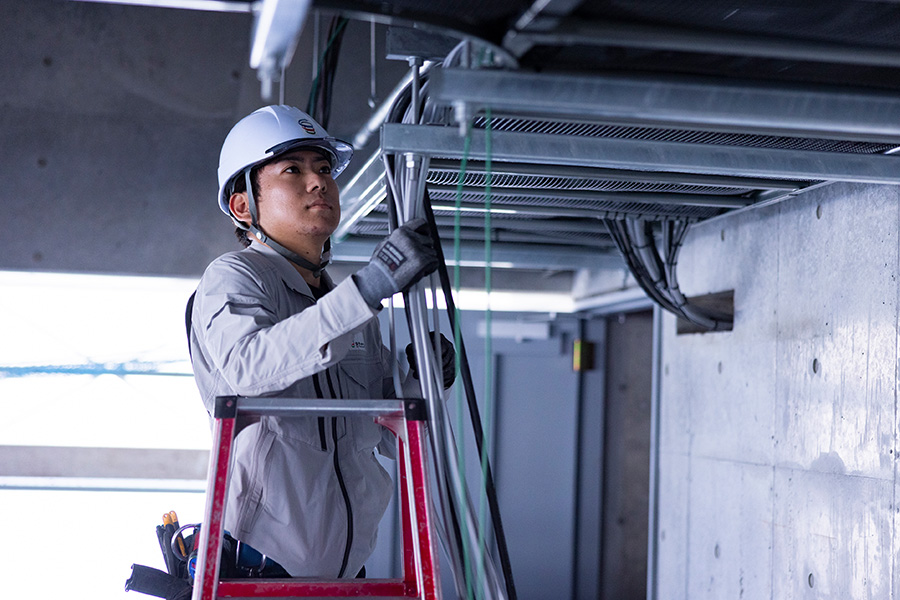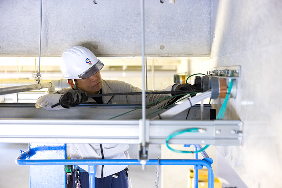 受変電設備、幹線設備、動力設備、照明設備、映像・音響設備、太陽光発電設備等の電気設備工事全般の設計・施工・管理を行なっています。工場、オフィス、住宅、商業・文化・医療施設等の様々な施設において、安全で快適な事業・生活環境を支えています。